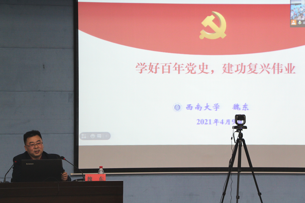 动员部署会后,学院党委邀请PA视讯登录入口荣昌校区基础部主任魏东为全体党员作了党史学习教育专题辅导:“学好百年党史 建功复兴伟业”。讲座紧紧围绕主题,从“深刻理解新时代深入开展党史学习教育的重要意义”、“准确把握百年党史的基本脉络和基本历史经验”、“正确掌握百年党史学习方法和途径”三个方面进行了详细解读,强调党史学习的关键是抓住“点”、“用”、“法”,要把党史学习教育与当前的工作结合起来,与攻坚克难解决新情况结合起来,以高质量的学习教育成效推动事业高质量发展。