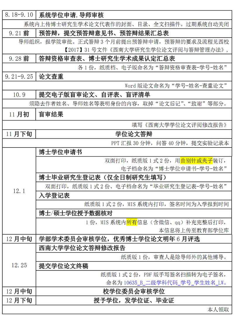 2020年秋季学期博士答辩工作时间安排表