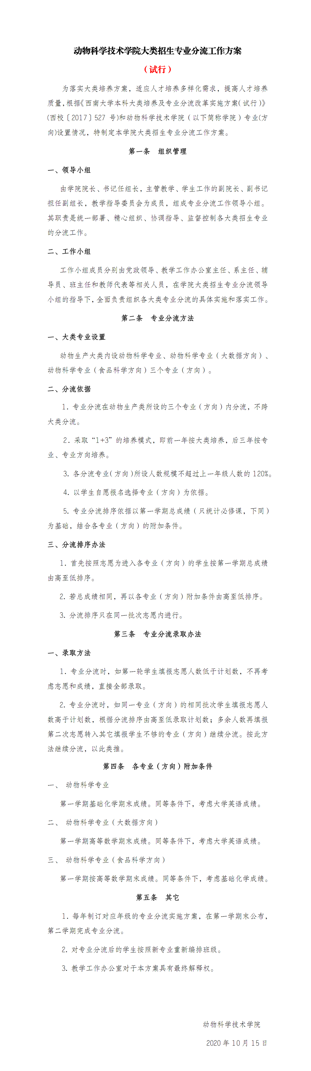 pa视讯官方集团大类招生专业分流工作方案(试行)