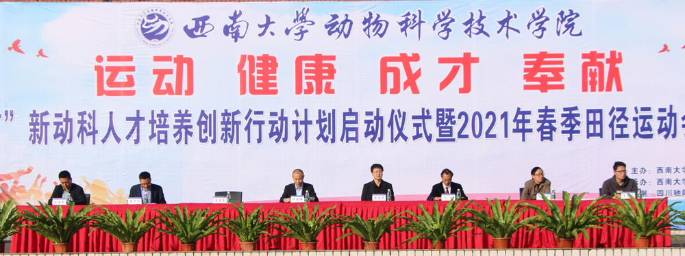 学院党委书记赵智华,四川驰阳集团饲料科技产业川南战区常务副总裁何前锋,学院党委副书记、纪委书记文武,副院长赵中权,工会主席杨远新,学生工作办公室主任、团委书记孙海军,运动会总裁判长李连强等领导、嘉宾在开幕式主席台就座。仪式由学院副院长周克勇主持,全体研究生、本科生及班主任参加仪式。