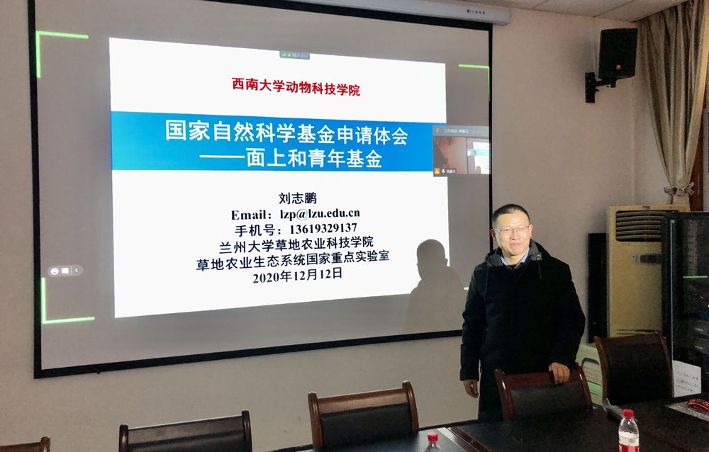 为进一步推进学院2021年度国家自然科学基金项目申报工作,提高课程质量,12月12日下午学院在37教223报告厅举办国家自然科学基金申请与慕课建设学术讲座(线上线下同时进行)。兰州大学刘志鹏教授(国家优秀青年基金获得者)、中国农业大学毛培胜教授分别作了“国家自然科学基金申请体会”和“课程建设与学科融合发展的实践与探索”专题讲座。讲座由学院党委书记赵智华主持。