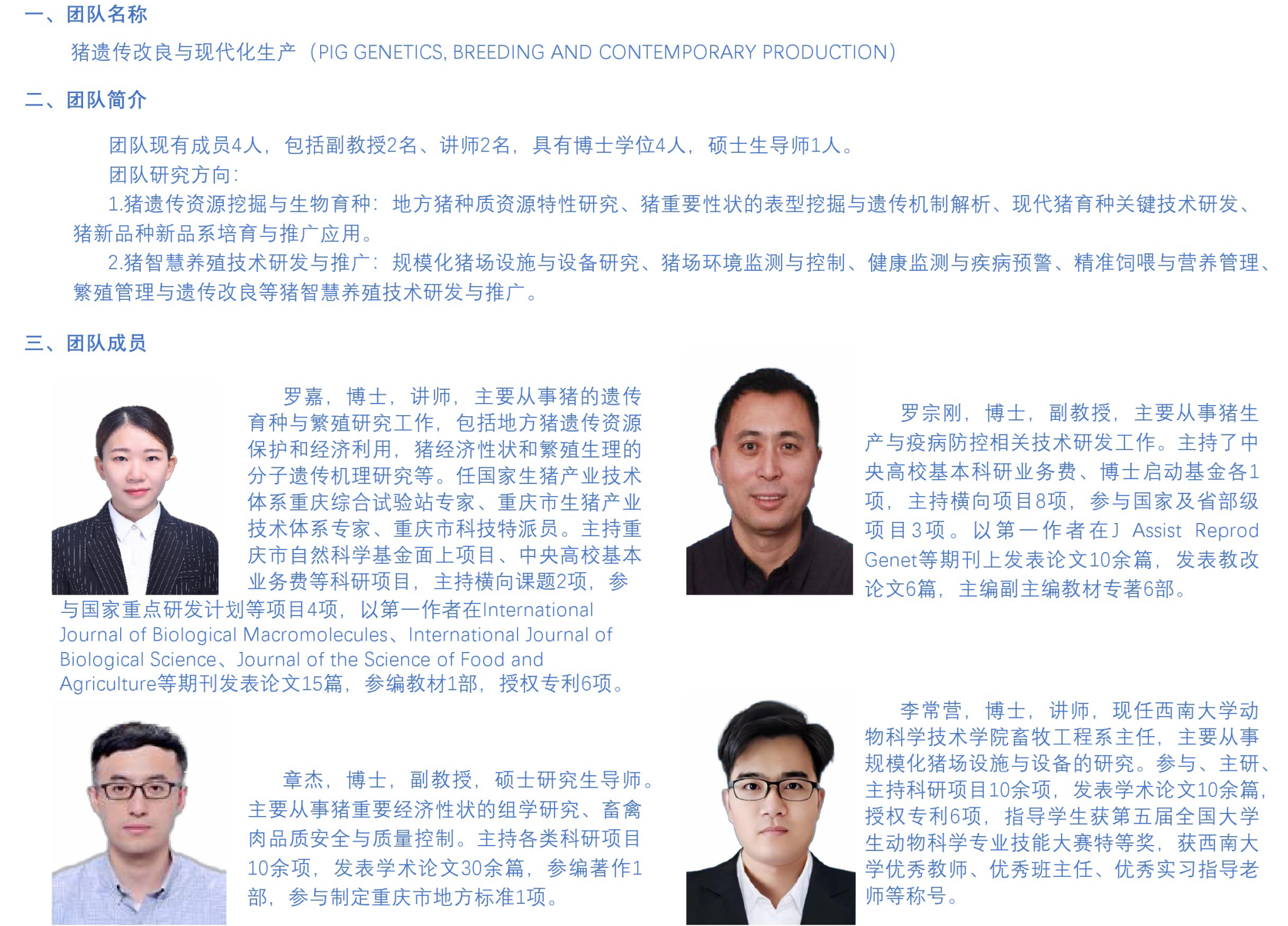 猪遗传改良与现代化生产创新团队